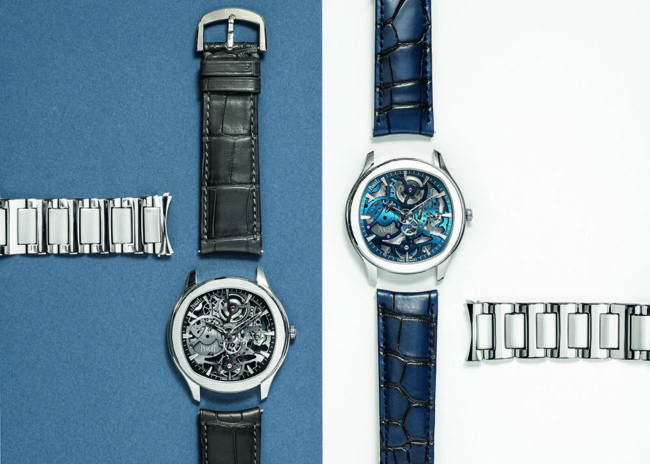 La nouvelle Piaget Polo Skeleton se décline en deux designs très différents l’un de l’autre : le premier possède un mouvement traité PVD bleu Piaget, alors que le second se dote d’une finition gris anthracite.